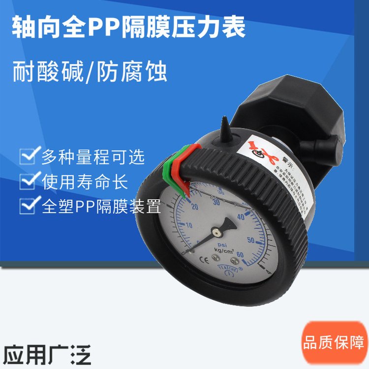 YEATHEL牌的防腐耐酸碱轴向PP隔膜压力表全塑PP隔膜压力表0-4kg7kg10kg产品:估价:45.00,规格:完善,产品系列编号:齐全 发布日期:2024-12-23
